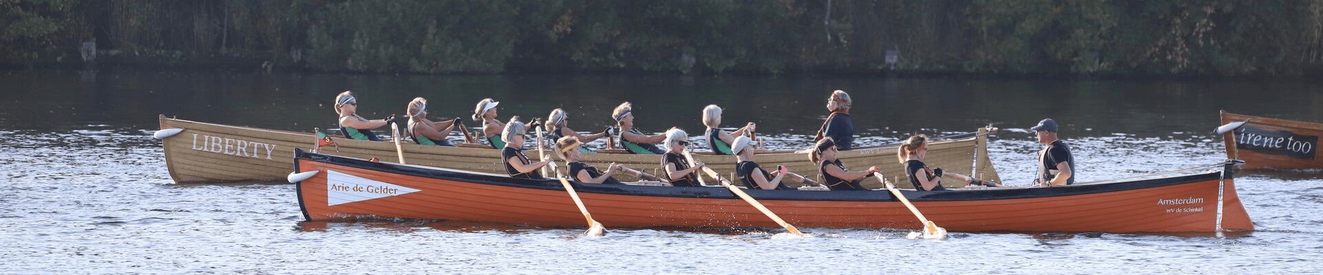 WV De Schinkel neemt deel aan de Nederlandse Kampioenschappen van de Dutch Pilot Gig Association met een dames- en herenteam. Vanaf maart tot november is er vrijwel maandelijks een wedstrijd bij de verschillende verenigingen in Muiden, Loosdrecht, Nederhorst den Berg, De Kaag, Scheveningen, Stellendam of bij ons in Amsterdam. De lengte van de verschillende wedstrijdparcours varieren tussen de 3 tot 9 kilometer. Bij een kort parcours worden twee wedstrijden op één dag geroeid. Ter voorbereiding van een wedstrijd trainen de wedstrijdteams gemiddeld 2 tot 3 keer per week.